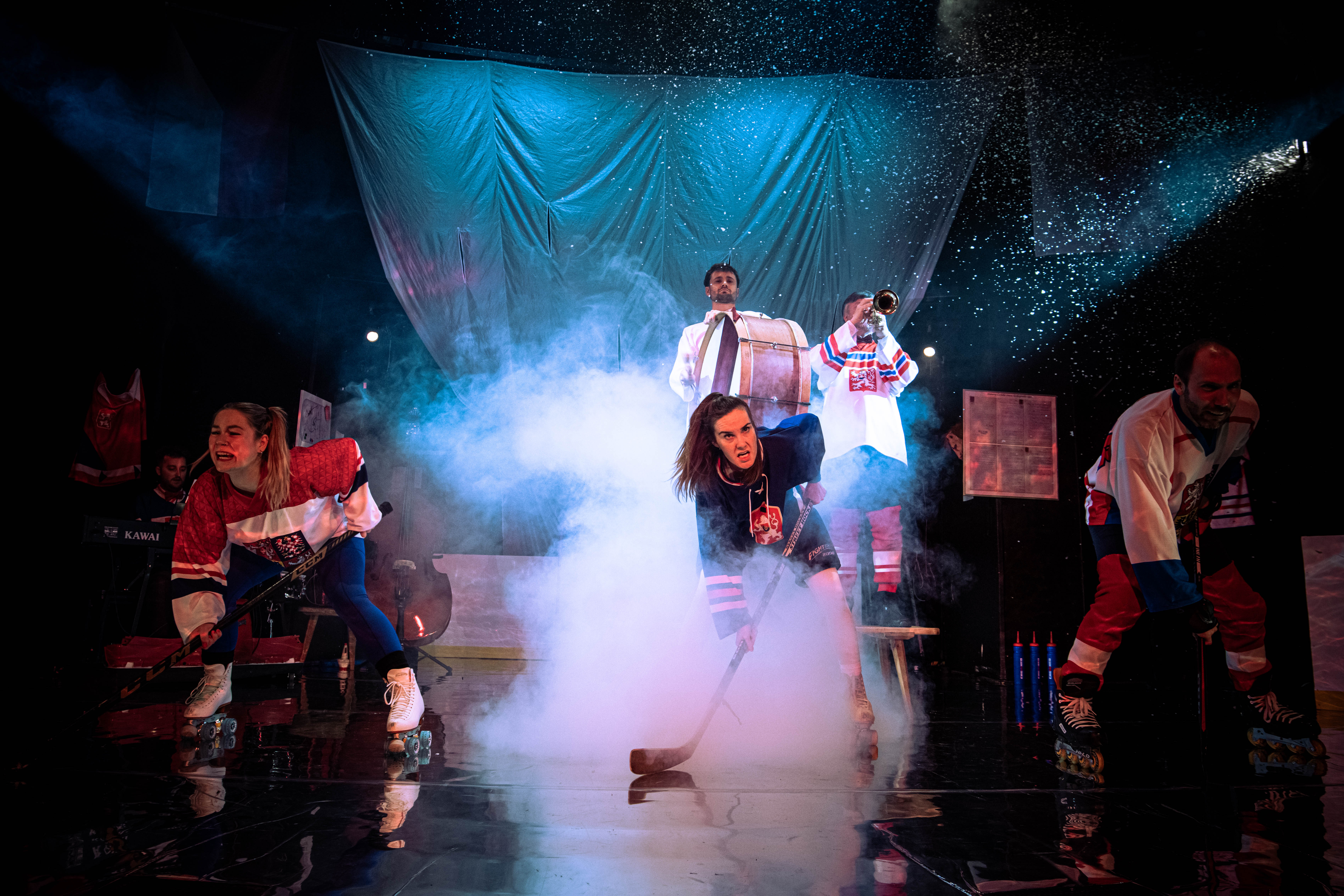 divadla včetně autorské hudby, bruslařské choreografie a prvky grotesky.