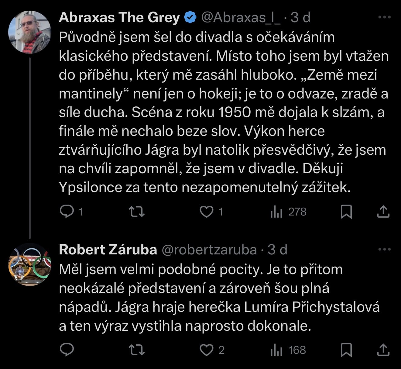 ROBERT ZÁRUBA: Mám rád hokej i divadlo. V představení „Země mezi mantinely“ jsem dostal obojí.