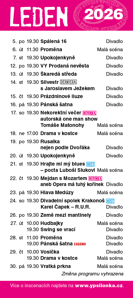 Leden v Ypsilonce nabídne pestrý program s výraznými